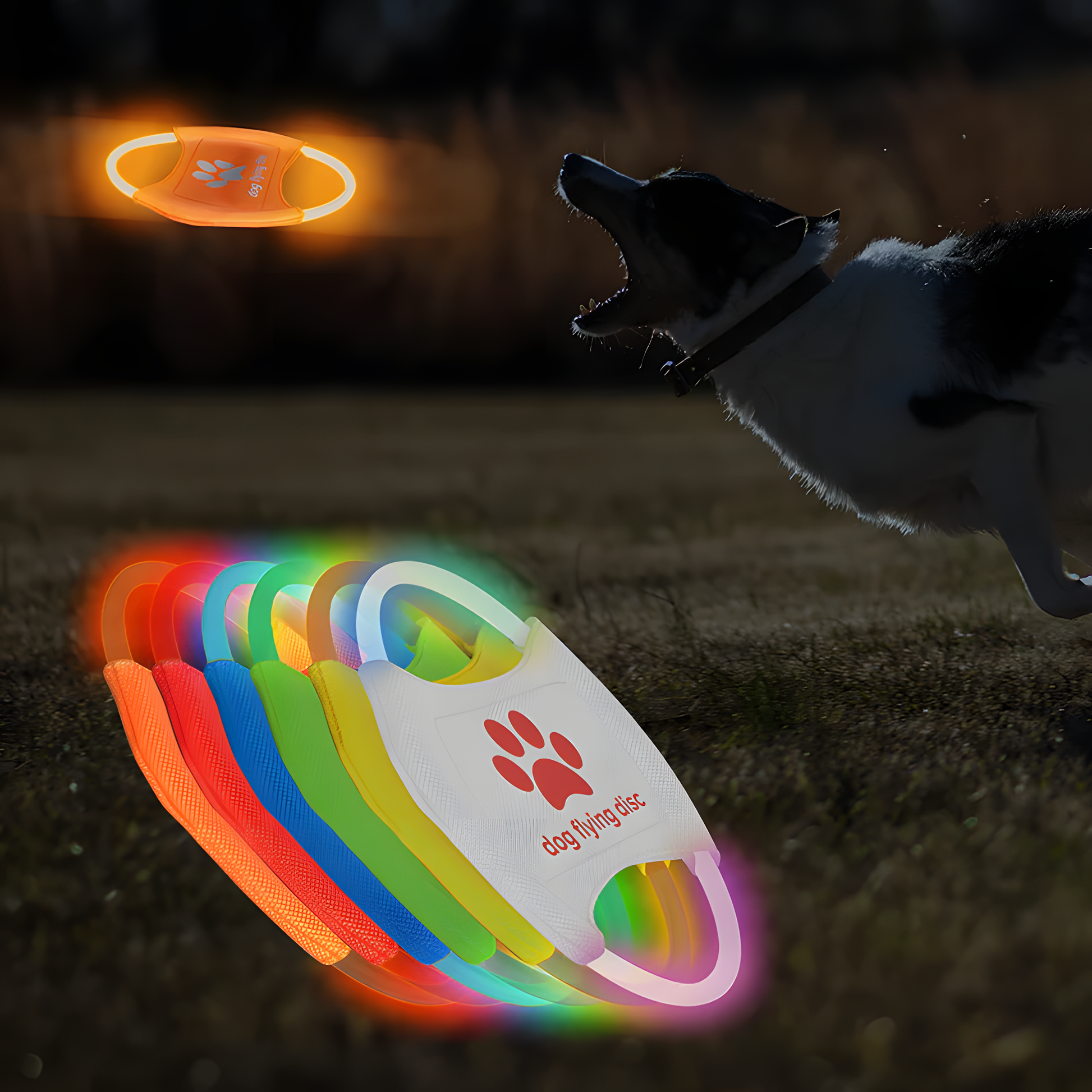 LED Rechargeable Dog Flying Disc - Glow-in-the-Dark Pet Training Toy with Paw Design